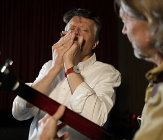 Seit etwa 10 Jahren Songschreiber und Hauptsänger des Trios "Café Voyage" – zusammen mit Maria Friedrich am Cello und Klemens Jackisch an der Sologitarre!